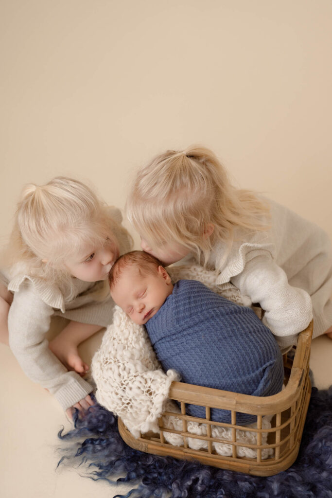 Then came George. Boy, was I surprised to get that email (pun slightly intended!) This time around they signed on as ambassadors. Having two preschoolers participating in a newborn session should be easier than one toddler, right? It was pretty challenging to get both of them to cooperate at the same time but you’d never know it by looking at their final images! There was a few moments where I was sweating it- but seeing Isla and Pippa dote on Baby George was so heartwarming. They are already wonderful big sisters and they are just a few weeks in!